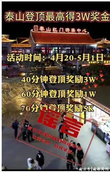 “登顶泰山奖金最高3万”等信息已被辟谣。