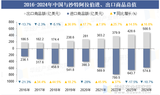 数据泄漏,2024年中国和沙特双边货色出进口额是1075.34亿好意思元。其中,中国对沙超越口500.5亿好意思元,比2023年增长16.8%。