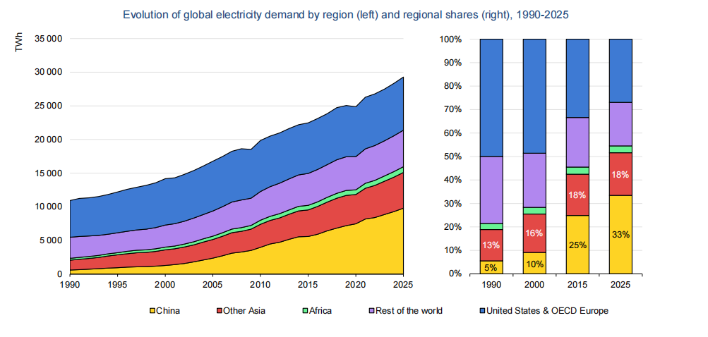 刚巧中国又是天下上最大的电力消费国和全球最大的新动力汽车分娩国,中国新式可再生电力份额在2025年将达到全球三分之一。
